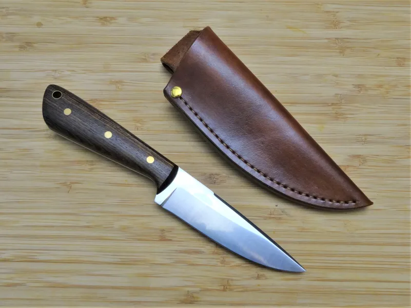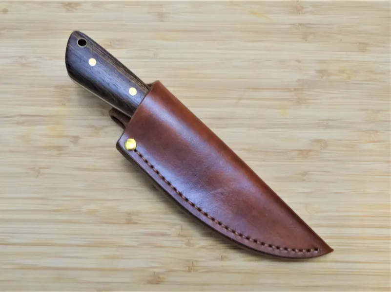This knife blends rugged utility with a distinctive character, making it a must-have for outdoor enthusiasts and EDC users alike. The 1095 high-carbon steel blade delivers exceptional edge retention and strength, while the exotic Bocote handle offers a rare, tactile grip that sets it apart. Ideal for camping, hunting, or daily tasks, its compact size and leather sheath enhance portability and style. Collectors will treasure its unique grain and Greg’s innovative approach, while adventurers will value its reliability. Pair it with a larger Camp knife or a smaller Neck Knife for a complete set—shop now to own this exceptional piece!