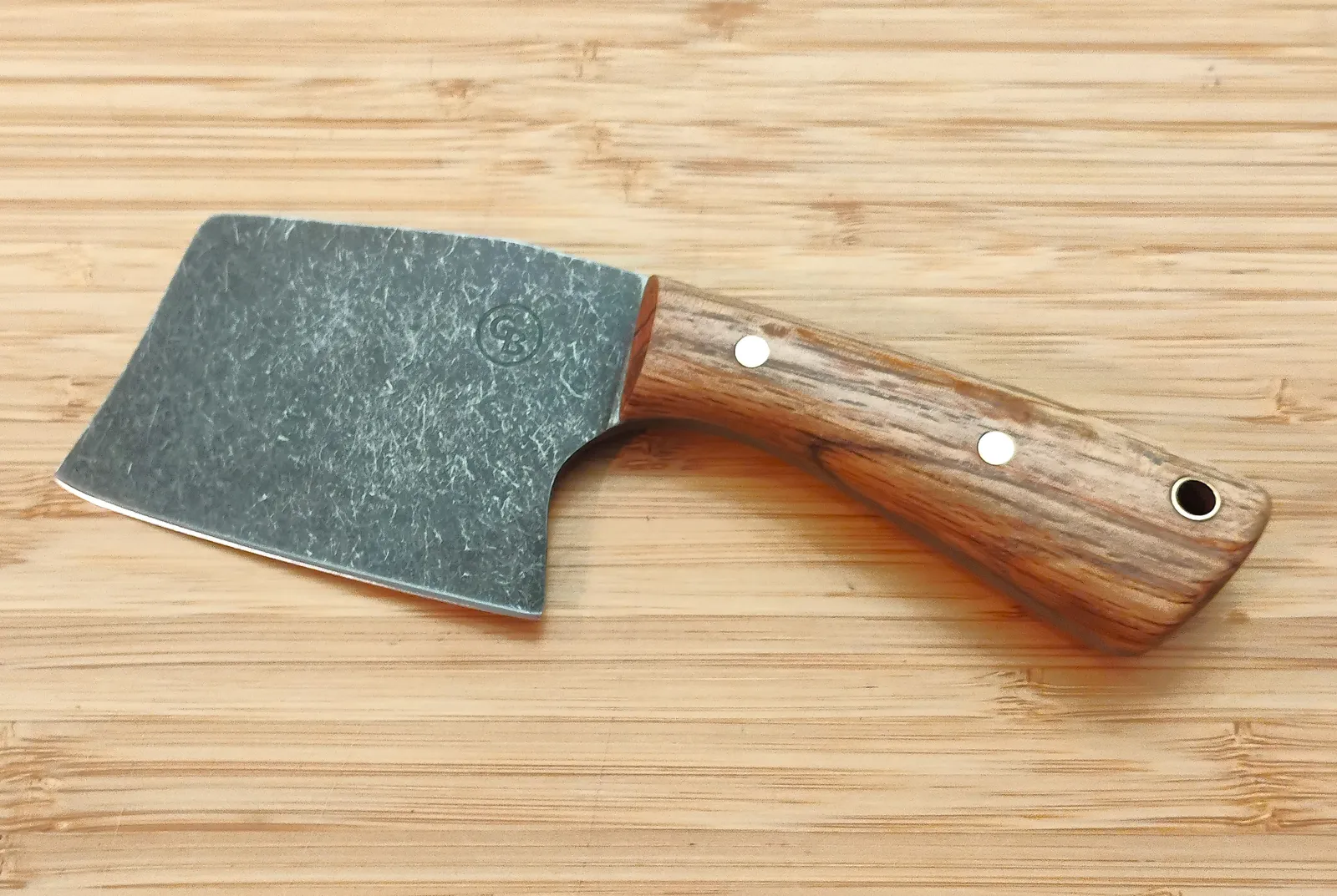 - Blade Style: Stonewashed mini-cleaver