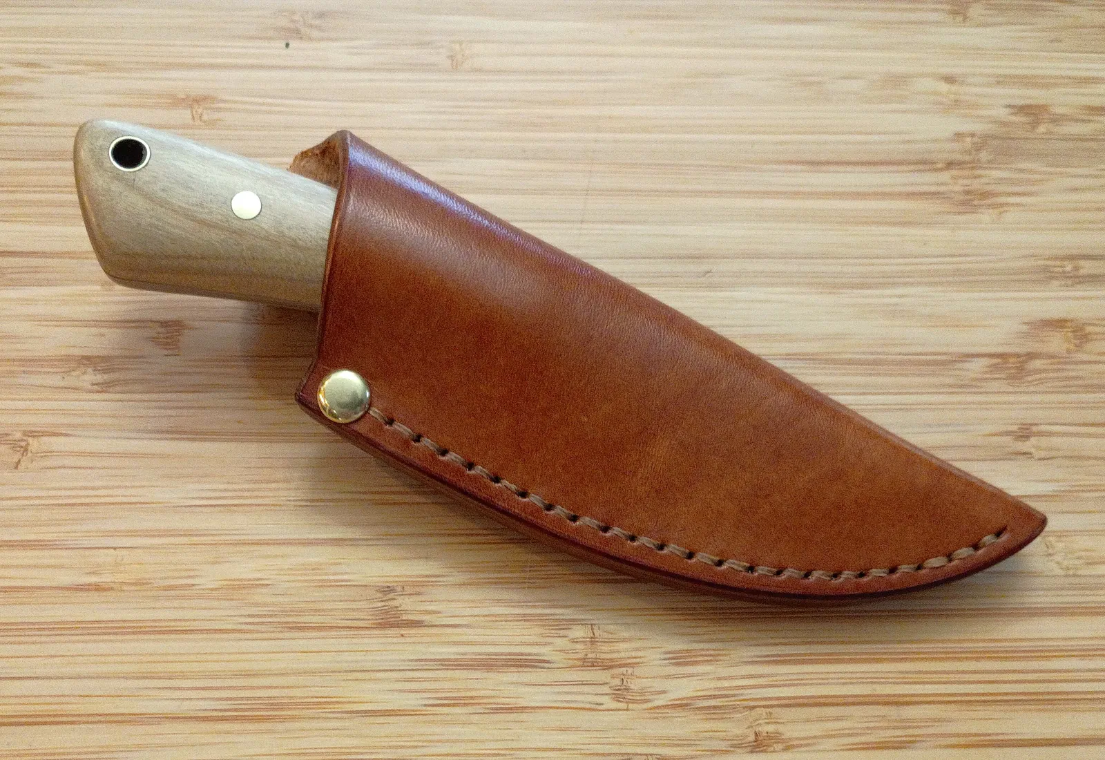 - Sheath: Custom hand-cut and stitched leather sheath