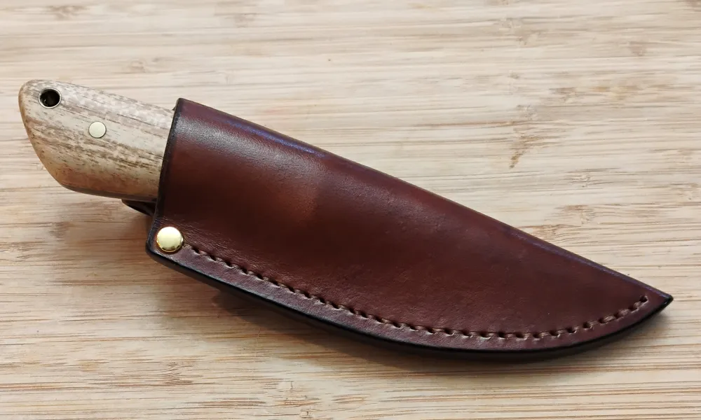 • Sheath: Hand cut and hand stitched custom leather pouch
