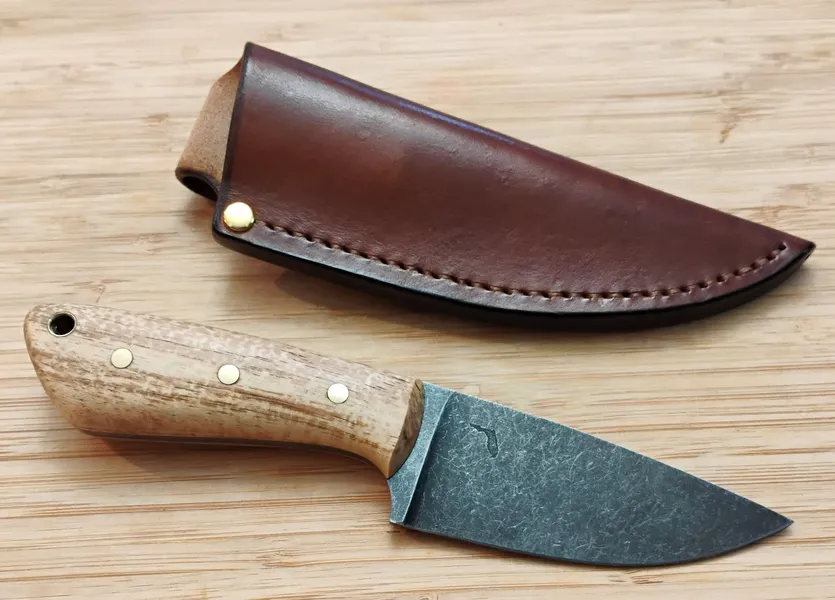 The Pecan 3 Finger Skinner #332 blends traditional craftsmanship with modern function, so every cut feels effortless.  Furthermore, the pecan wood, native to Florida, adds Southern charm, while the stonewashed finish ensures durability and low maintenance. Whether you hunt, camp, or collect, this knife delivers both performance and style. Finally, it includes a custom leather pouch sheath for protection and elegance. Explore more skinning knives at GreBec Knives — where Florida’s beauty meets expert craftsmanship.