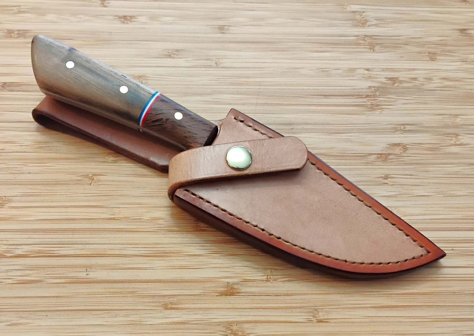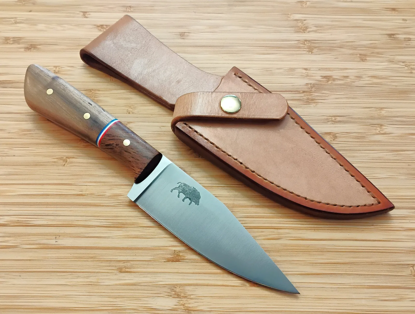 - Sheath: Custom oak bark-dyed leather (handmade by Becky)