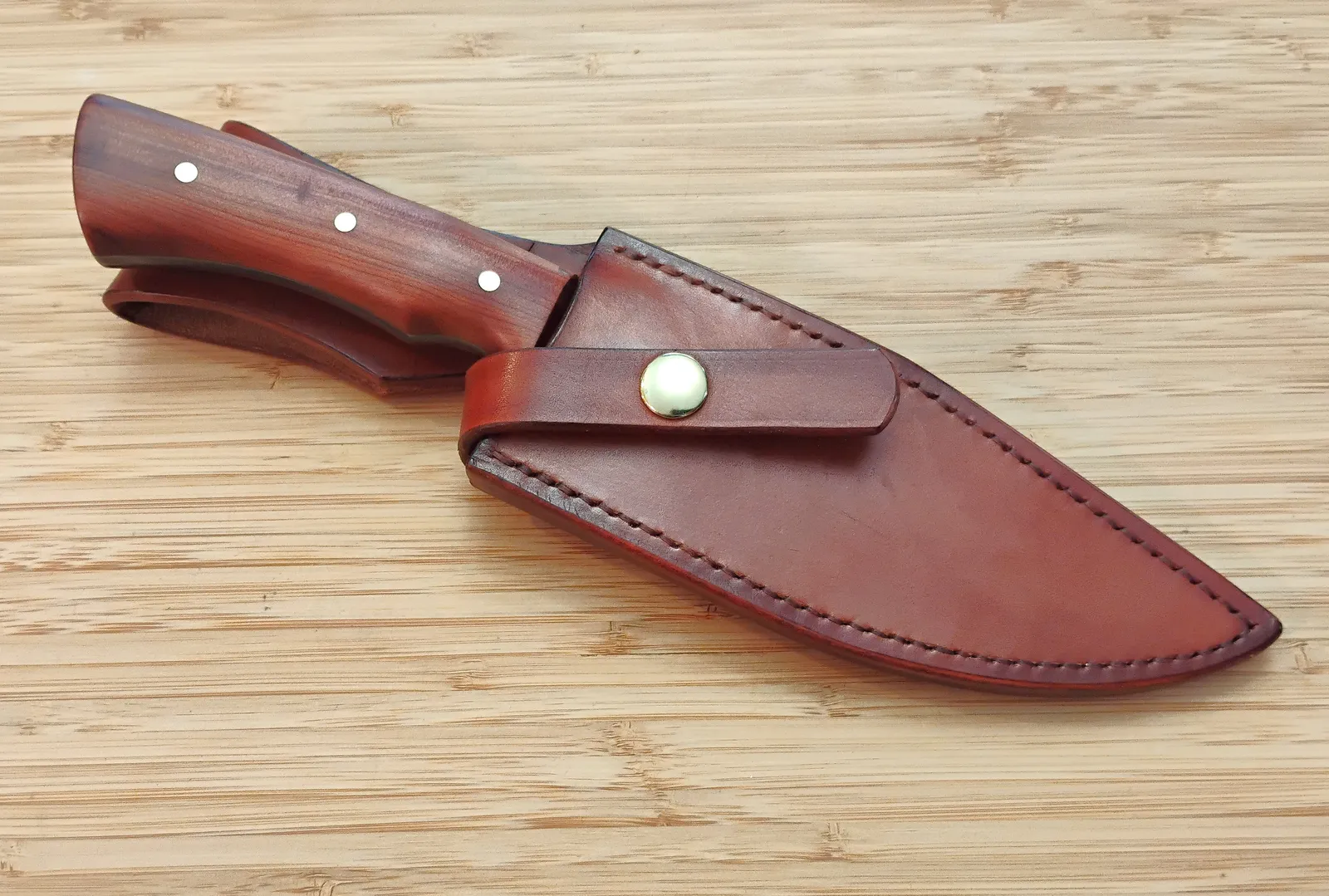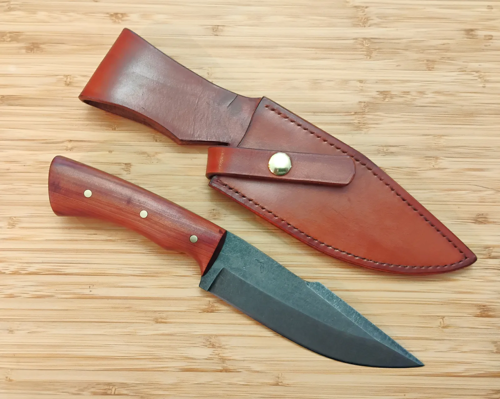 Each knife includes a custom, hand-cut and dyed leather sheath with a retention strap for safe carry and storage. Whether used around camp or displayed as a standout piece of craftsmanship, the Red Cedar Harpoon Clip Point #418 represents GreBec Knives’ commitment to locally sourced materials, functional design, and honest, handcrafted work.