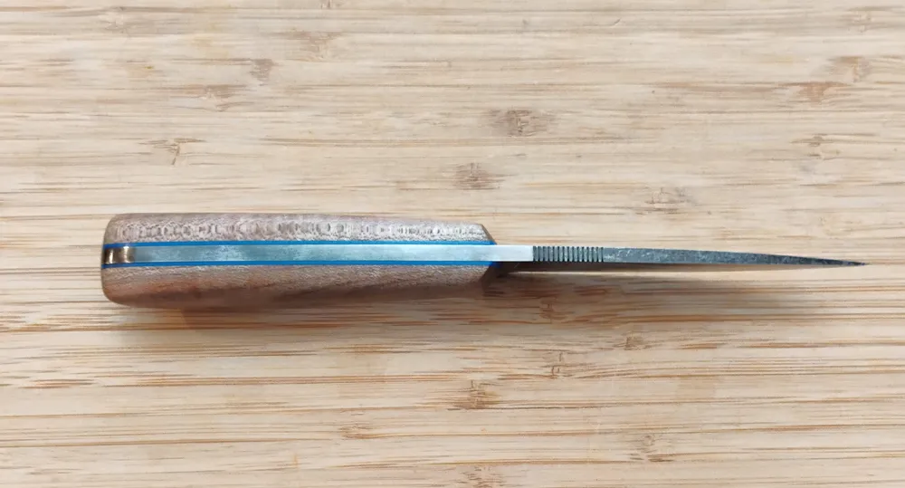 - Handle Material: Stabilized Florida Red Maple with Blue G10 Liners