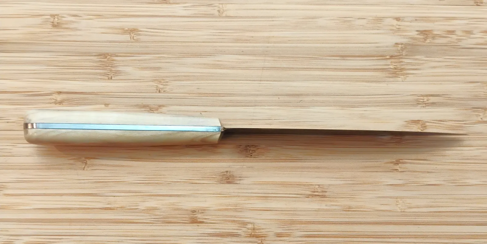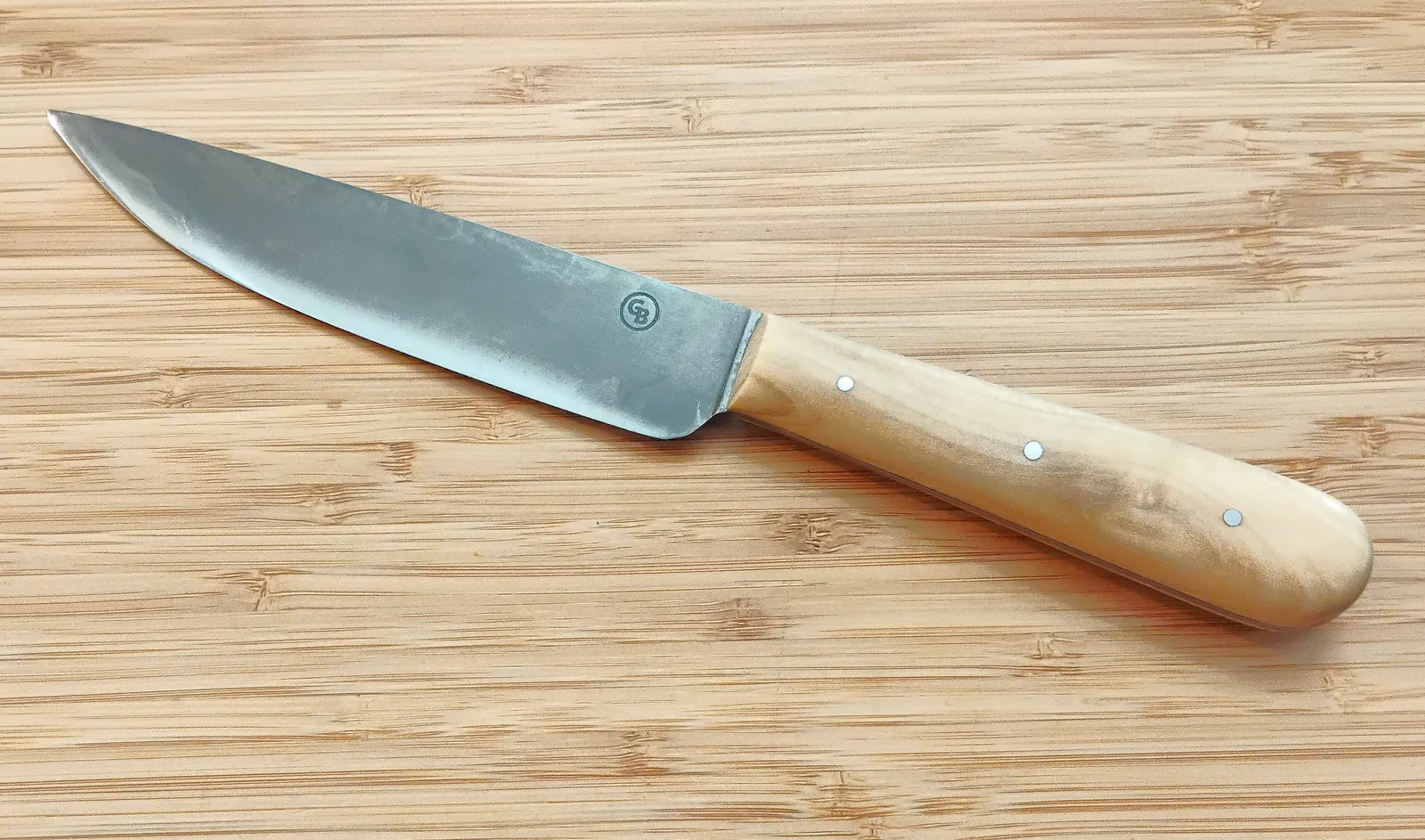 The stabilized Magnolia handle displays subtle figured grain and warm tonal variation, making each knife truly one of a kind. Secured with mild steel pins, the handle offers impressive hardness, density, and natural rot resistance—well suited for daily kitchen use. Home cooks and market shoppers consistently gravitate to this knife, and it sells out quickly thanks to its heirloom quality, low-maintenance finish, and outstanding cutting performance.